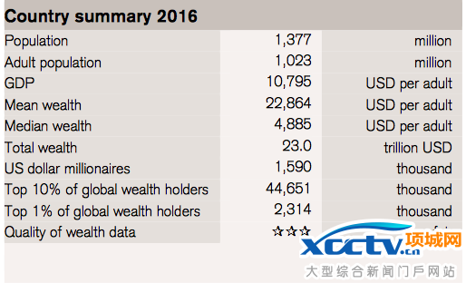2016全球财富排行榜详细榜单 中国成年人热均财富15.8万元