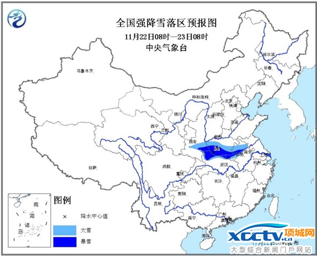 预计,22日08时至23日08时,陕西东南部、河南中南部、安徽北部及湖北北部等地的部分地区有大雪,局地有暴雪(10~14毫米),上述地区新增积雪深度3~6厘米,局地可达8厘米以上。中央气象台11月22日06时继续发布暴雪蓝色预警。