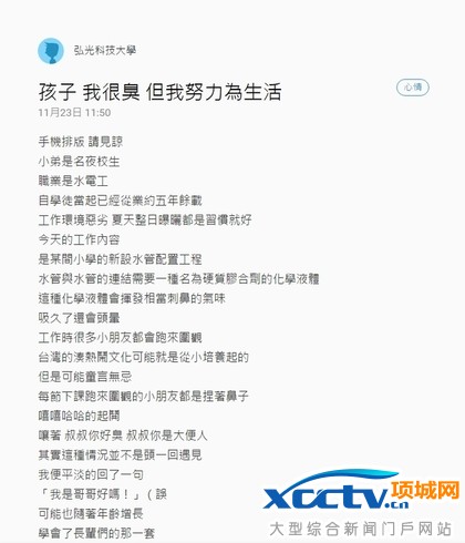水电工真情告白 孩子我很臭但我努力生活