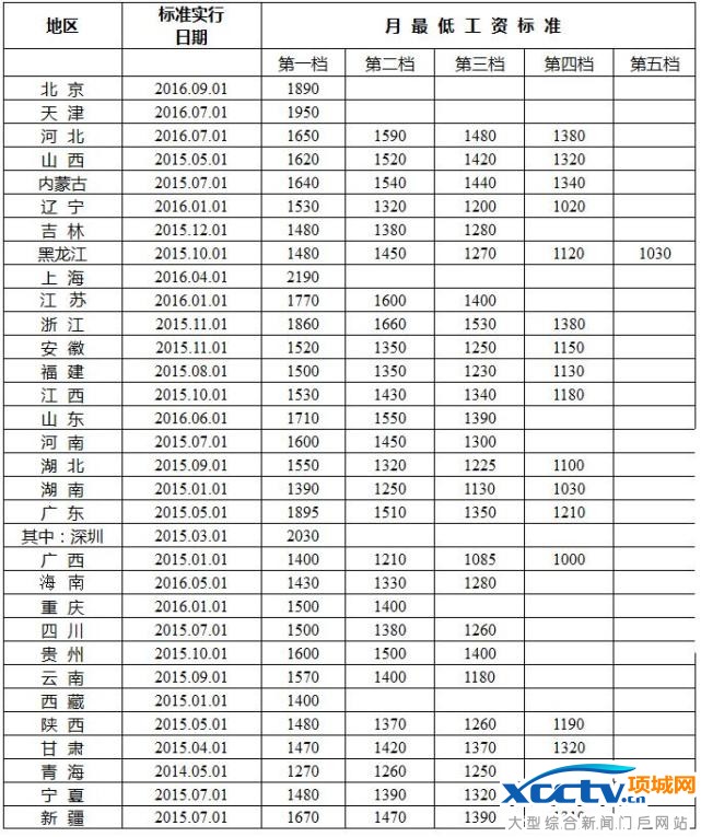 最新全国各地最低工资标准出炉 上海2190元全国最高