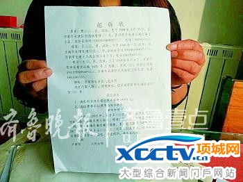 曹女士向记者展示她的起诉状。
