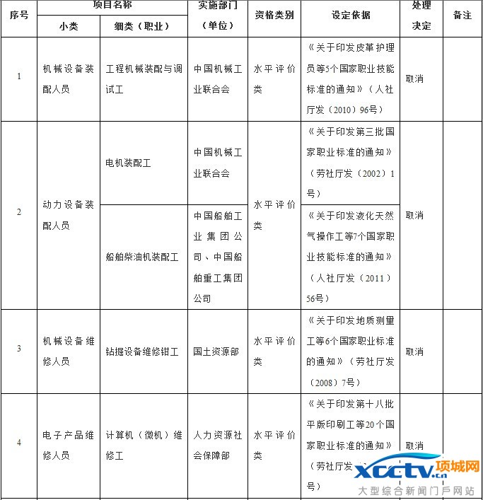 二、取消的技能人员职业资格许可和认定事项(共计107项,均为水平评价类)