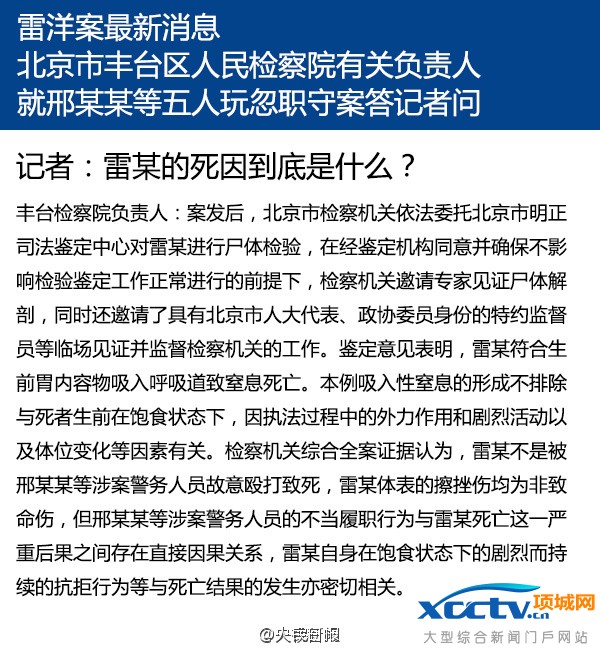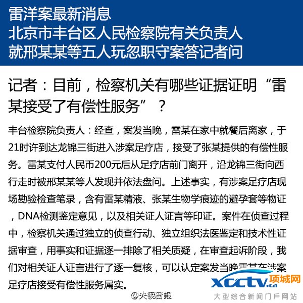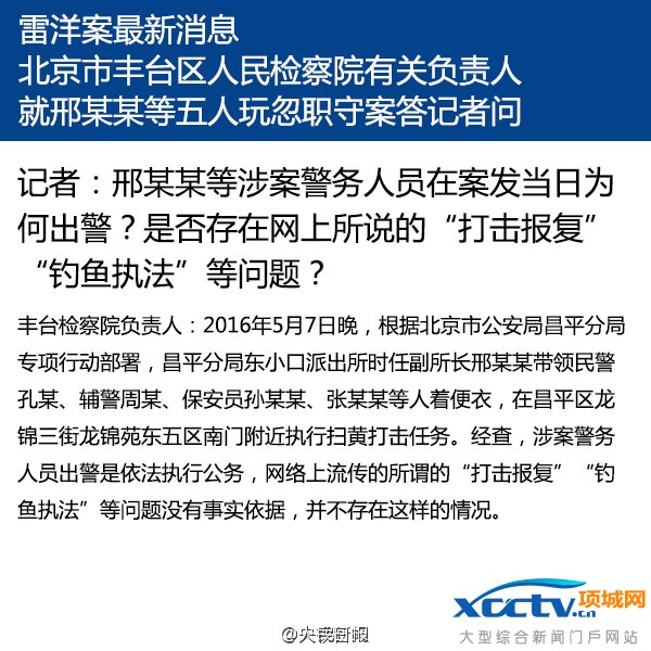 雷洋案最新消息:检方就邢某某等五人玩忽职守案答记者问】①为何涉案警务人员已构成玩忽职守罪却又不起诉?②雷某到底因何而死?③有哪些证据证明“雷某接受了有偿性服务”?④事发当晚涉案警务人员执法的过程...检方回答↓↓↓