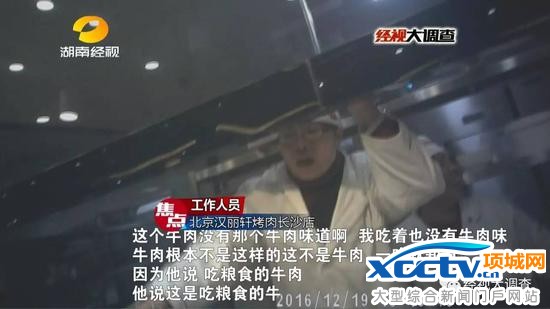 北京汉丽轩烤肉店的原料据称是全国统一采购、配送的,但这些统一配送的原料中并没有什么牛肉,去皮的鸭胸肉倒是不少。随后,这些冰冻鸭胸肉又被伪造成牛肉,送上了餐桌,汉丽轩烤肉店的工作人员自己都声称不会吃。北京汉丽轩烤肉店遍布全国,可是在长沙这家店我们愤怒的看到,店里的所谓牛肉都是用鸭肉伪造,甚至还掺入变质的鸭肉,而且造假用的鸭肉都是统一配送过来的。若不是记者长时间辛苦的卧底调查,谁能知道其中真相!消费者会永远被蒙蔽,欺诈伎俩会永远继续,汉丽轩会继续“骗过全世界”。