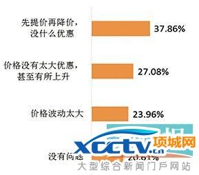 大降价是“双11”的最大吸引点。广告最为火热的淘宝和京东也是最多消费者选择的“剁手”渠道。调查显示,只有六成消费者表示“双11”活动商品价格有优惠。近四成消费者表示“双11”商家存在“先提价再降价”的情况。调查显示,消费者在商品价格存在问题方面,认为“先提价再降价”占37.86%,“价格没有太大优惠,甚至有所上升”占27.08%,“价格波动太大”占23.96%。