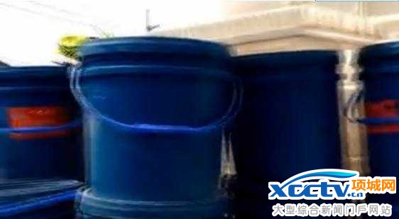 老板表示,像这样的蓝色塑料桶,一桶色素75元,拿的多就70元。