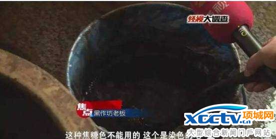 当记者询问厂家时,店主显得非常谨慎,并不愿意透露厂家来源等信息。不过店主说,这些没有任何标示的“三无”焦糖色色素,销量更好。