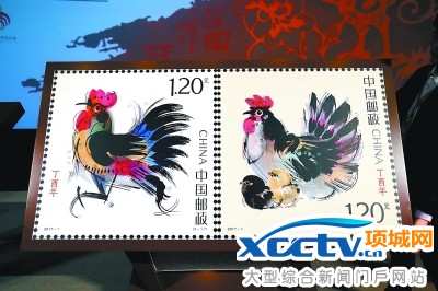 (2)1月3日,杭州邮票公司工作人员展示即将发行的《丁酉年》生肖特种邮票。