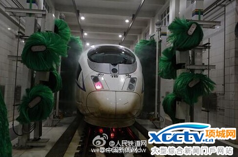 雾霾天,咱还要回家洗个澡,在雾霾里穿梭的高铁咋办?@人民铁道网告诉你,wuli高铁也会"洗刷刷"!专业洗澡水、搓澡巾、沐浴液,专用的自动清洗机和轨道,车头还要人工清洗4遍,一趟重联编组的列车清洗完毕大约需要45分钟!