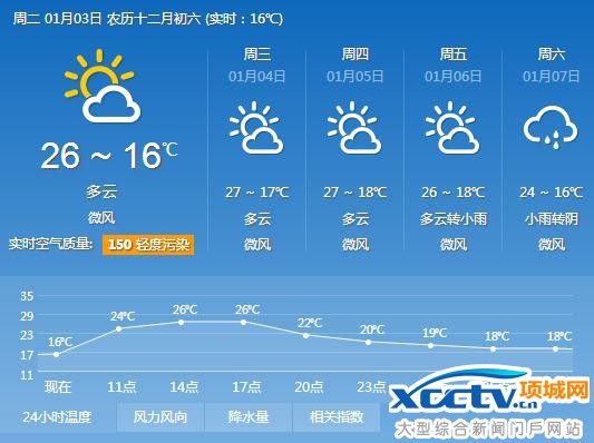 2017年1月3日广州天气预报:晴到多云 早晚有轻雾或轻微灰霾