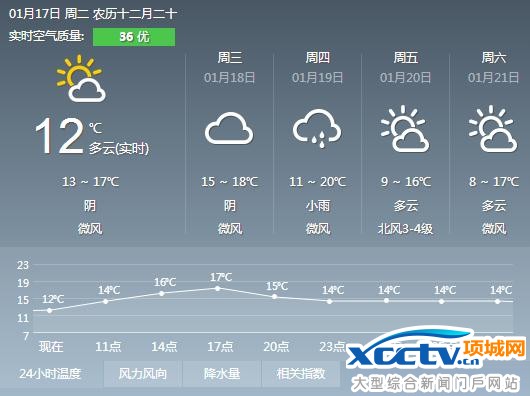 2017年1月17日广州天气预报:阴天 有分散小雨和轻雾