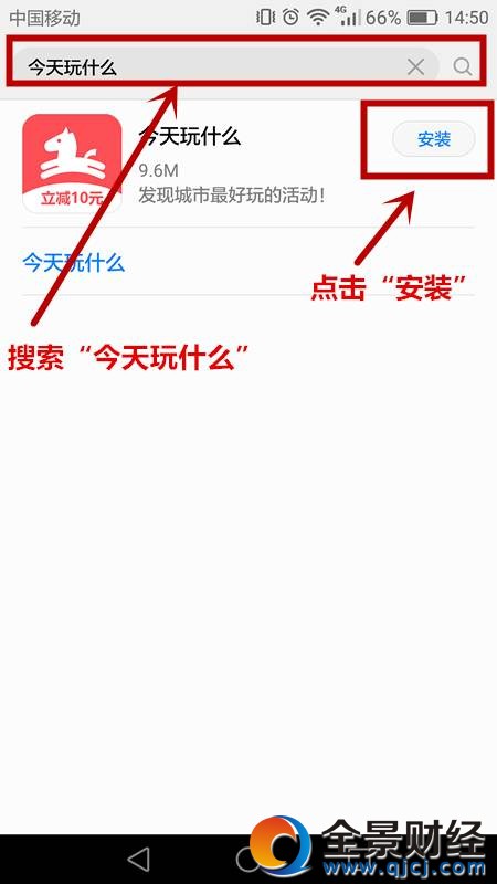 ②在搜索处输入“今天玩什么” 搜索出下图页面后,点击“安装”