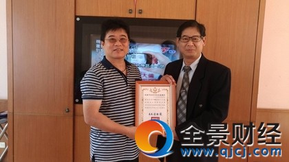 消防局第三大队长王国泰颁发感谢状给蔡冠璋(左),感谢热心公益。