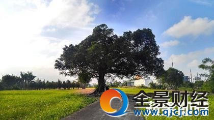 号称「台中金城武树」的南屯区镇平里「青榕公」,周遭农田景观丰富。