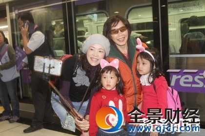 小朋友也开心跟着大人尝鲜搭乘机场捷运。