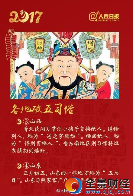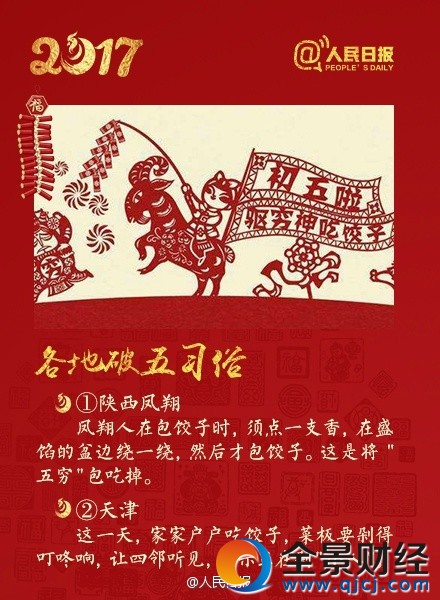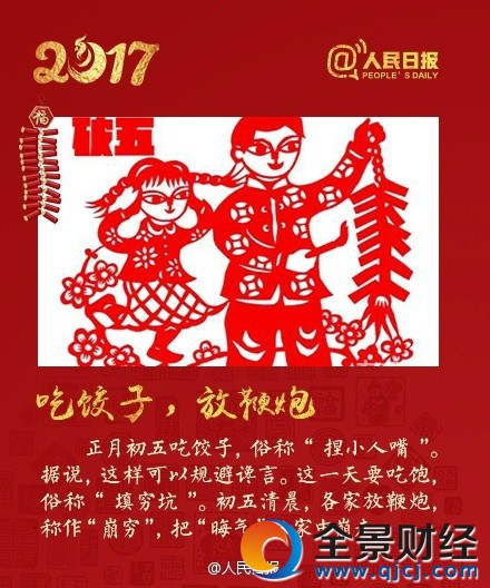今日初五,年俗多多:①迎财神,过了初一,最重要的活动就是接财;②破五,诸多禁忌过此日皆可破;③开市,大年初一关门的大小店铺,会在今天开市,意在招财进宝…更多↓吃饺子,放鞭炮,迎财神,贺团圆!转发,迎财运,讨个好彩头!