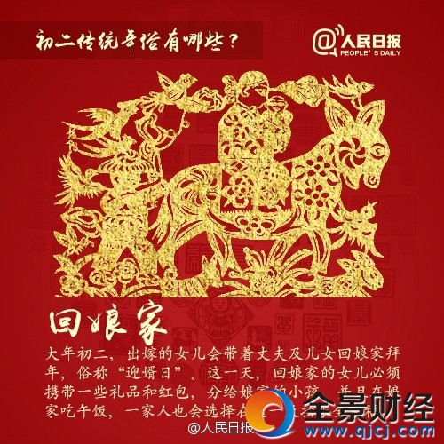 大年初二,出嫁的女儿要回娘家,和夫婿同行,俗称“迎婿日”。这一天,回娘家的女儿要带些礼品和红包,分给娘家小孩,并且在娘家吃午饭。过去,一家人也会在这一天拍张全家福。更多初二年俗↓↓今天,你去外婆家了吗?大年初二,早安!