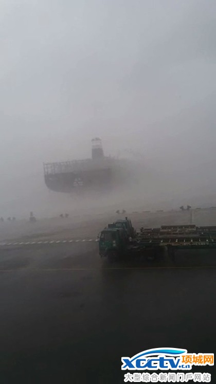 有网友目击高雄港内船舶断缆,一艘船舶随风浪漂流。翻摄画面
