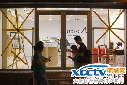 莫兰蒂颱风逼近,店家做防颱準备把门面玻璃贴上胶带。胡瑞麒摄