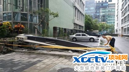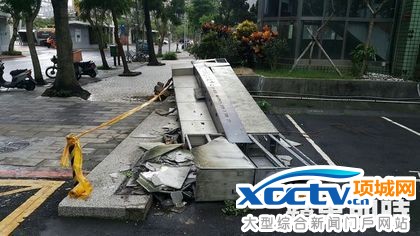 (更新:动新闻)强颱莫兰蒂暴风半径狂扫南台湾,而外围环流也不容小觑,北台湾不少地方也有零星灾情,下午北市信义区行政中心前停车场围篱,也不堪瞬间强风吹拂而倒塌,目前行政中心员工已先围起警戒线,后续将通知相关单位前来清运。(突发中心林金圣/台北报导)发稿时间:16:14
