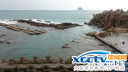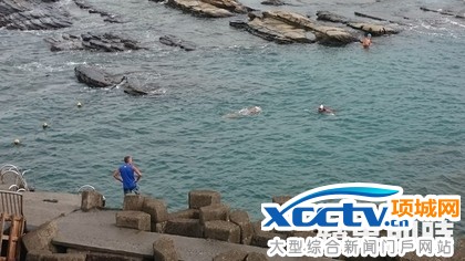 基隆外木山海边又见晨泳人潮。蔡进男摄