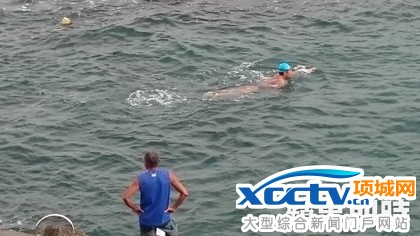 基隆海边风浪不大,开始出现晨泳人潮。蔡进男摄