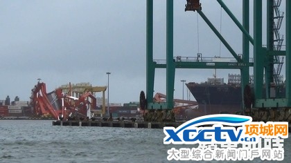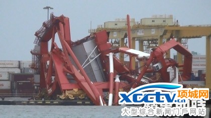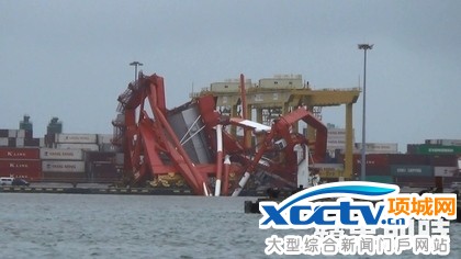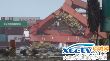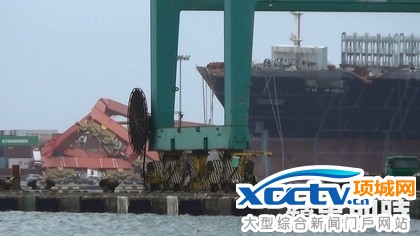 原标题:高雄港内好悽惨 起重机扭曲栽水里