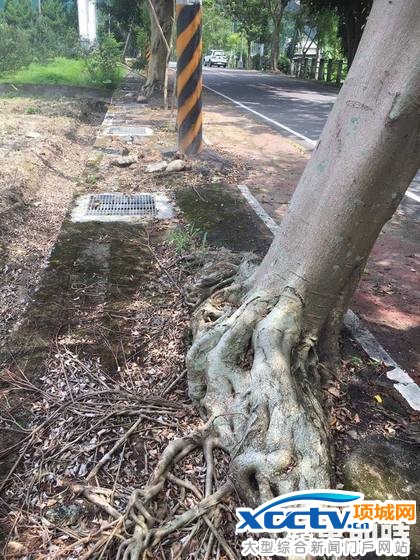 老树树根与水沟盖抢地共生。台湾护树团体联盟提供