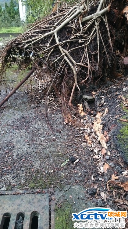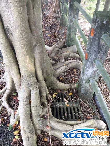 倒塌老树根部受柏油路面和水泥沟盖严重挤压,几乎已无生长空间。高堂尧摄
