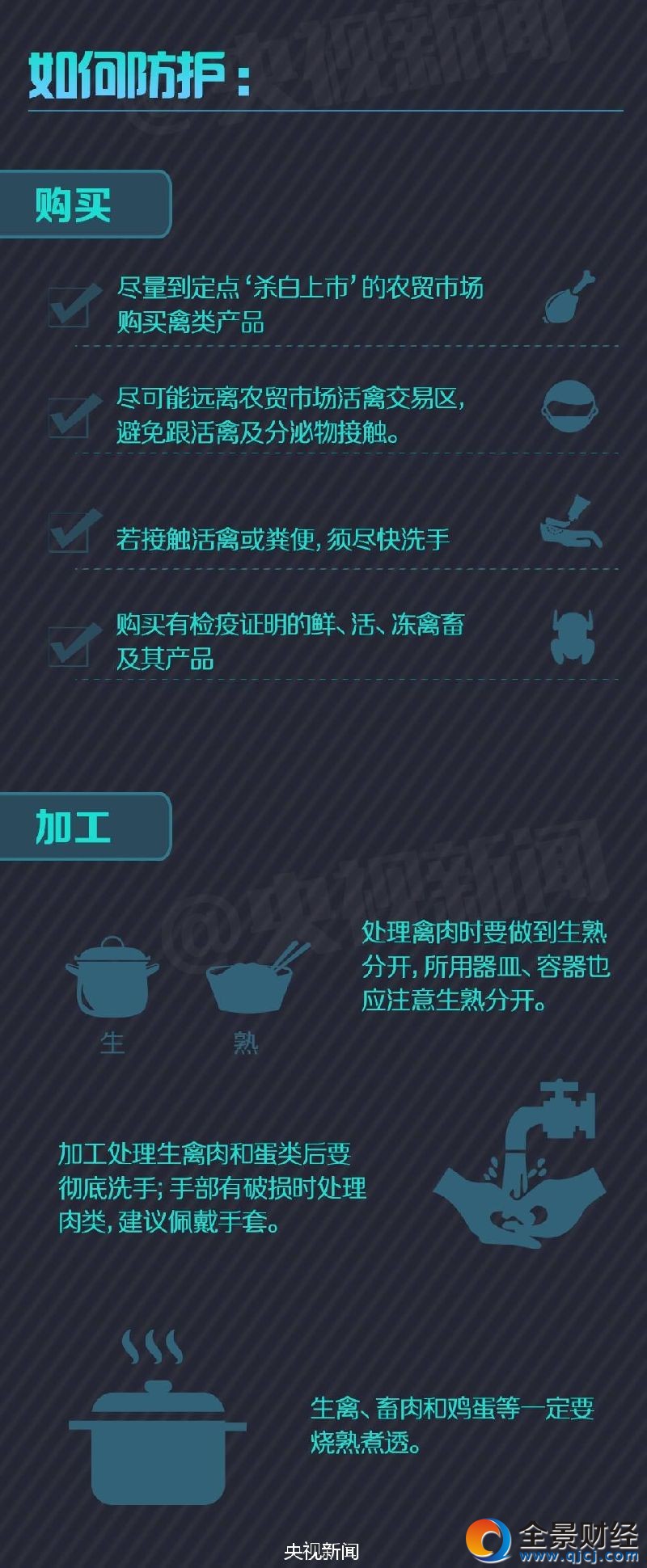 此外,购买禽类的消费习惯要改变,尽量到定点‘杀白上市’的农贸市场购买禽类产品。”专家提醒,H7N9流感是乙类传染病,老年人、有慢性基础性疾病或免疫低下的人尤需注意避免,但它是可防、可控、可治的,若出现发热症状应戴上口罩尽快就诊,问诊时切记要告诉医生发病前的禽类接触史。