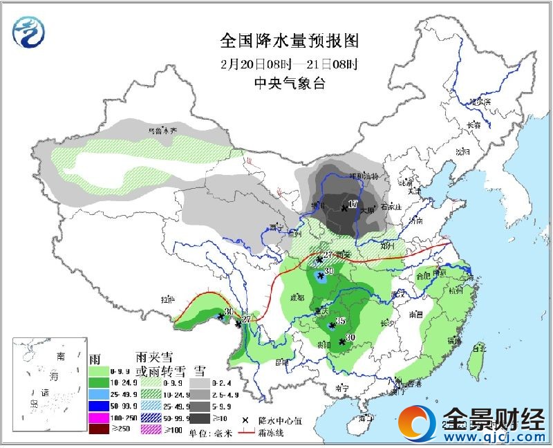 2017年2月20日未来三天全国天气预报:我国将迎大范围明显雨雪天气 我国大部地区将有大风降温