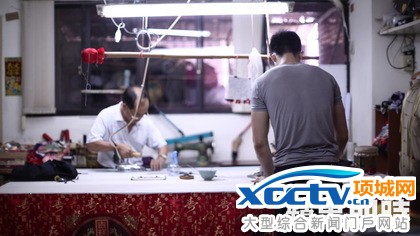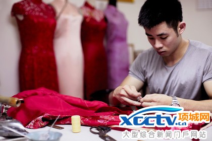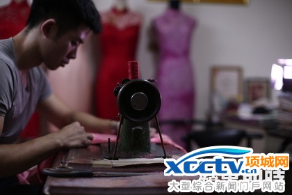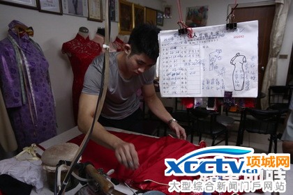 李威樊跟着旗袍大师许荣一学做旗袍。曹忠昇摄