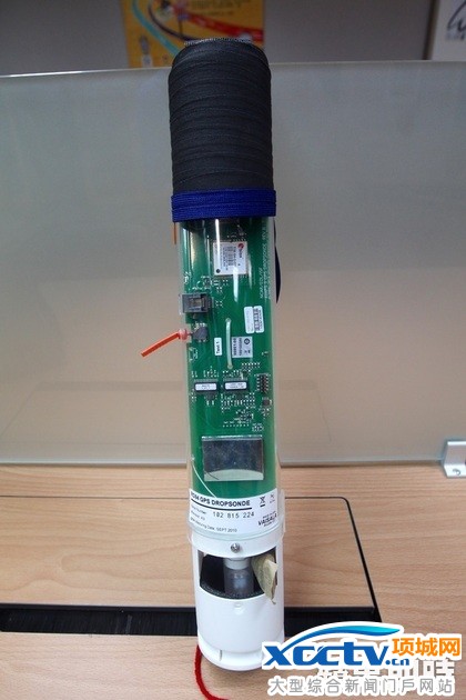 可进行颱风观测的「投落送」仪器(Dropsonde、大气侦测探空仪)。