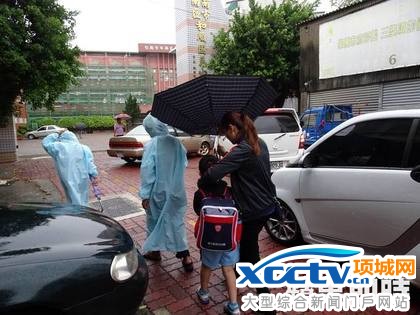 「不是每个家庭都有汽车,骑机车冒风雨接送小孩的市民,赖市长考虑到了吗?」除了骑机车送小孩到校的家长抱怨连连外,不少家住学校周遭的小朋友大多三三两两一起撑着雨伞上学,不时被突然吹袭的强风吹得尖叫声四起。