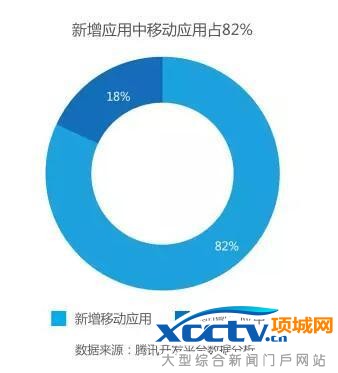 腾讯开放平台近一年来,移动应用仍占主导,新增应用中移动应用数量占8成。