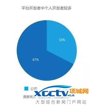 平台开发者中,个人开发者占多数,占整个平台开发者数量比例达67%。