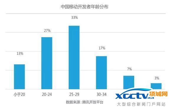 30岁以下的开发者占比73%,在移动开发领域,85后已然成为新生主力军。其中,25岁到29岁占比最大,达33%;25到29岁也是年龄分布的分水岭,20岁的开发者呈现出了逐步增长的趋势。
