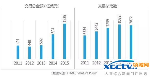 全球创新创业投资规模在2015年创出新高。据KPMG统计,全球有创投支撑的创业企业共获得7872笔投资,总金额达到1285亿美元。与2014年相比,虽然交易笔数小幅下降3%,但金额大幅增加44%。与投资金额剧增相应的是估值超10亿美元的“独角兽”大量涌现。2015年全球共有72家创业企业加入了“独角兽”的行列。