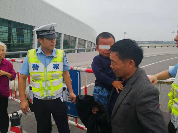 3岁男童头被护栏卡住 郑州机场交警徒手施救3分钟脱险