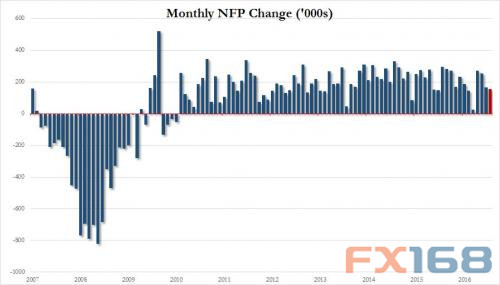 (美国非农就业人口走势图 来源:Zerohedge、FX168财经网)