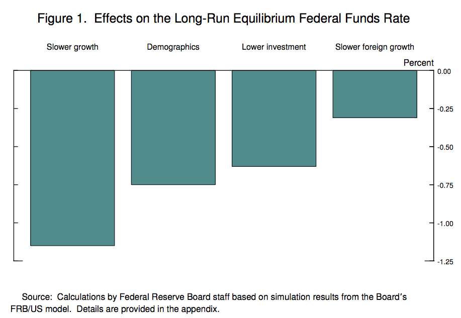 (上述四大因素——低增长、人口趋势、投资疲软、外部增速疲软,导致利率长期低位盘旋。来源:美联储)