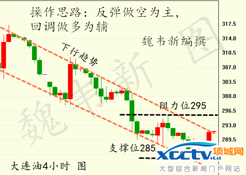交易策略1:空单:上方反弹295.0附近,空单进场,常规止损,止盈目标290.0附近,破位看285.0;如果行情先破位285.0一线则回撤做空,多单暂不考虑