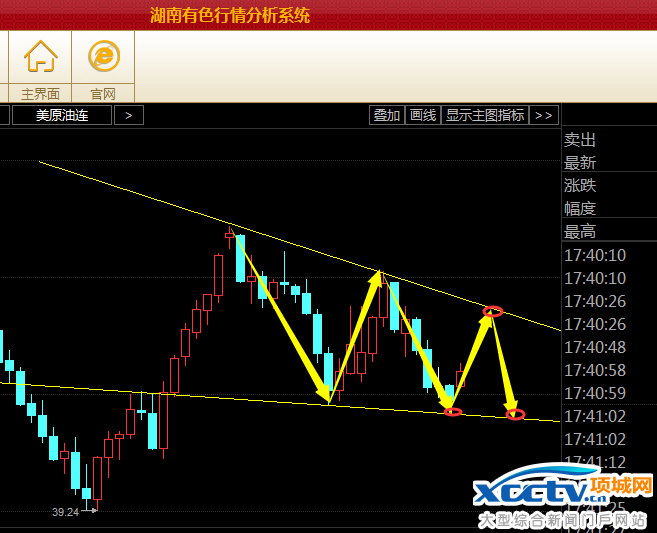 目前粤微盘价格处于周K图20日均线附近,锋刃解盘认为这是中线的一个比较强力的一个支撑位,本周整体走势以波段式上行为主,。从日K线图来看,布林带收口运行,K线运行于布林带中轨附近,MACD双线于零轴下方聚合平移,红色能量柱缩量,KDJ三线向下扩散,MA5下穿MA10、MA20和MA60,目前空头还需要时间去消化。从四小时图来看,布林带向下收口运行,K线运行于布林带下轨下方,红色能量柱缩量,MA5下穿MA1O,粤微盘价格在周四先后两次试探高点后一路回调。