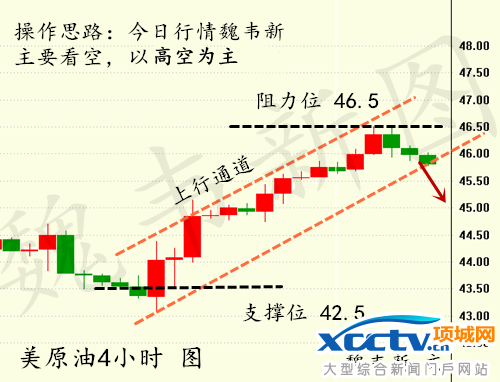 交易策略1:空单:反弹46美元附近做空,止损46.3,目标45.5;