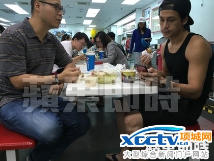 Gino(右)跟男性友人採买一段落,走到一旁用餐区点餐,悠哉坐下食用。特勤组摄