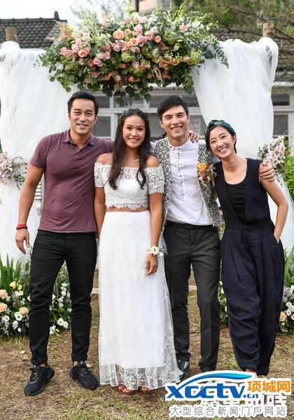 凤小岳拥吻老婆 草地婚险遭颱风吹毁