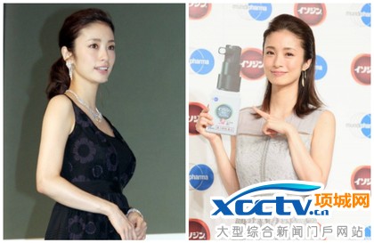 上户彩产后胸部丰满(左图),近来缩水不少(右图)。合成照片、香港《苹果日报》