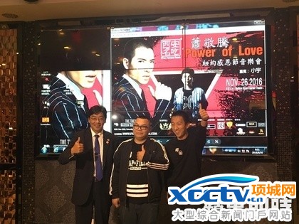 萧敬腾成为继张学友、五月天后,第三个登上麦迪逊广场花园的华人歌手。左起Fancy Maker Entertainment CFO狄锺琪、製作总监邝俊杰、西安名吃CEO Jason Wang。丁维莉摄