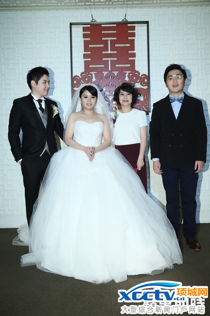 新人与王月(右二)及王月儿子(右)开心合照。郑孟晃摄