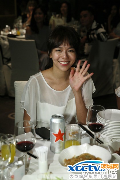 杨丞琳一袭露肩装吃喜酒。郑孟晃摄